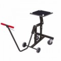 Svařovaný ocelový vozík pro přepravu stolů. Tažná/tlačná tyč s rukojeťmi, včetně páky pro aretaci zvedacího pohybu. Ložná plocha s žebrovaným pryžovým potahem a 4 bílými pryžovými nožkami. Šedá kola z termoplastické pryže nezanechávající stopy na plastovém ráfku s přesnými kuličkovými ložisky. Dvě pevná opěrná kola a dvě otočná.Vozíky na stoly, 135 x 49 x 81,5 cm
