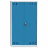 Skříně slouží k uložení chemických látek ve vlastním obalu. Uložené kapaliny stojí na roštu a tím nezmenšují záchytný objem polic. Skříň obsahuje 4 záchytné police s roštem o záchytném objemu 19 l na polici a spodní záchytnou vanu bez roštu o objemu 20 l. Dvoubodové uzamykání cylindrickým zámkem na klíč. Vyztužené dveře s větracími otvory uložené na vnitřních čepech lze otevřít do úhlu 110°. Vnitřní strana dveří opatřena přihrádkou pro dokumenty k uloženým kapalinám. Povrchová úprava konstrukce práškovým lakem v barvě RAL.Skříně na uskladnění kapalin, 1950 x 1200 x 500 mm
