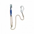 Tlumič pádu (z 32 mm širokého polyamidového popruhu), na obou koncích vybaven upevňovacími smyčkami. Polyamidové lano LB 100 o průměru 12 mm s našitými smyčkami, z nichž jedna je nastavitelná pomocí kovové nastavitelné spony. 1x ocelová karabina AZ 0 Normy: EN 355 Délka: max. 2mTlumič pádu ABM s lanem a 2 karab.