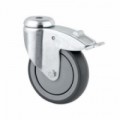 Otočné kolečko s vidlicí z nerezové oceli pro dlouhodobé používání. Otočná hlava s dvojitými kuličkovými ložisky pro hladký chod. S polyamidovými pneumatikami pro použití při teplotách od -20 do +80 °C. Se šroubovanou osou umožňující snadnou výměnu kolečka. Pomocí brzdy zabráníte kutálení a otáčení.Otočné kolečko s otvorem pro šroub a brzdou – nosnost 150 kg