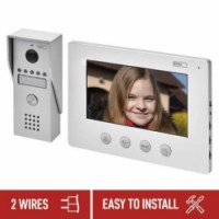 Sada videotelefonu se 7" barevnou obrazovku s vysokým rozlišením a možností ovládání vchodových dveří či pojezd brány. Stříbrné barevné provedení. 80° úhel záběru kamerové jednotky - můžete ji umístit i na nízký plot nebo tam, kde se vám to nejvíce hodí. Možnost regulace hlasitosti zvonění. Výběr z 16 přednastavených melodií. V šeru či ve tmě si kamerový systém automaticky přisvítí infračervenými LED diodami. Videotelefon je připraven pro propojení pomocí dvou vodičů, namísto klasických čtyř. Dveřní kamerová jednotka je voděodolná (IP44). Snímací prvek kamery: 1/3 CCD s IR přísvitem. Napájení kamerové jednotky: z monitoru. "Montáž na stěnu." Doporučená kabeláž: RVV/CYSY 2x 1,0 mm. Počet propojovacích vodičů (monitor/zámek/brána): 2 + 0 + 0.Videotelefon EMOS EM-03M 2WIRE, sada
