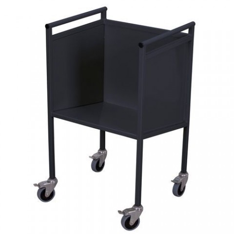Vozík pro převoz dokumentů s otevřenou boční stranou. Ložná plocha je nakloněná o 10 ° a zamezuje tak vypadávání dokumentů z vozíku. Rozměry užitné plochy 550 x 500 x 420 mm. Šedá kola z termoplastické pryže nezanechávající stopy na plastovém ráfku s přesnými kuličkovými ložisky. Čtyři otočná kolečka s brzdou o průměru 100 mm.Vozíky na dokumenty, 62,5 x 55 x 102,5 cm
