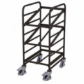 Ocelový vozík se dvěma nakloněnými policemi v úhlu 15° nebo 30 °. Do kovových rámů polic lze vsadit přepravky o rozměru 600 x 400 mm. Nosnost police je 50 kg. Pojízdnost zajišťují dvě pevná a dvě otočná kola z termoplastické pryže na plastovém ráfku s kuličkovými ložisky, nezanechávají stopy na podlaze.Vozíky na přepravky bez ložné plochy, se šikmými policemi, 3 police