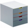 Zásuvkový modul Varicolor® se 4 zásuvkami ve dvou různých velikostech. Ideální řešení pro organizaci a archivaci vašich dokumentů až do formátu 24 x 32 cm. Zásuvky jsou vybaveny zarážkou, takže se posouvají hladce a tiše. Stohovatelné díky protiskluzovým podložkám.Zásuvkový modul Varicolor® 4 - Durable