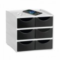 Jednotlivé moduly lze umístit vedle sebe a stohovat. Pro dokumenty formátu A4 a formáty do 26 x 35 mm. Zásuvky s dorazem.Zásuvkový modul Djois, 6 zásuvek