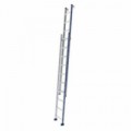 Víceúčelový trojdílný žebřík po dvanácti příčkách. Vhodný pro profesionální použití. Lze sestavit jako stojací štafle, výsuvný nebo opěrný žebřík. Možnost nastavení výšky po jednotlivých příčkách. Opatřen jisticími pásy. Součástí tohoto multifunkčního žebříku jsou protiskluzové patky. Splňuje normu ČSN EN 131 a je opatřen TÜV certifikátem.Výsuvný hliníkový žebřík PROFI, 3 x 12 příček, Alpos Alu